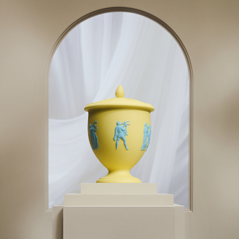 Brighten your spaces with the Bacchus Flower Vase in Canary Yellow. This stunning piece, expertly crafted from Jasperware, showcases detailed designs inspired by ancient myths. A true symbol of luxury and sophistication, perfect for any elegant interior.