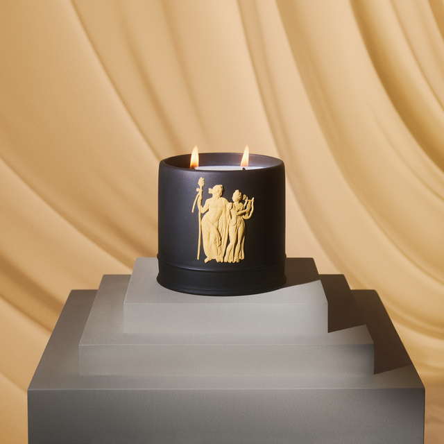 Stimulate your senses with the Ardent Bacchus Scented Candle. This exquisite candle, housed in black and cane Jasperware, features a passionate mix of saffron, rose, jasmine, and sandalwood. A luxurious fragrance that brings warmth and elegance to any room.