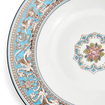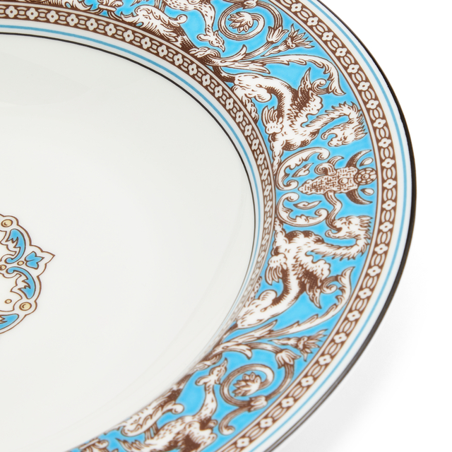 There are few patterns that live up to the richness of Florentine Turquoise; first introduced in 1931 on a fine bone china body and characterized by an ornate border intricately detailed with a cacophony of mystical creatures and fantastical flora. The collection features a wealth of delicately hand-rendered motifs set against the clarity of white, fine bone china. A truly glorious collection with a heritage stretching back seven decades.