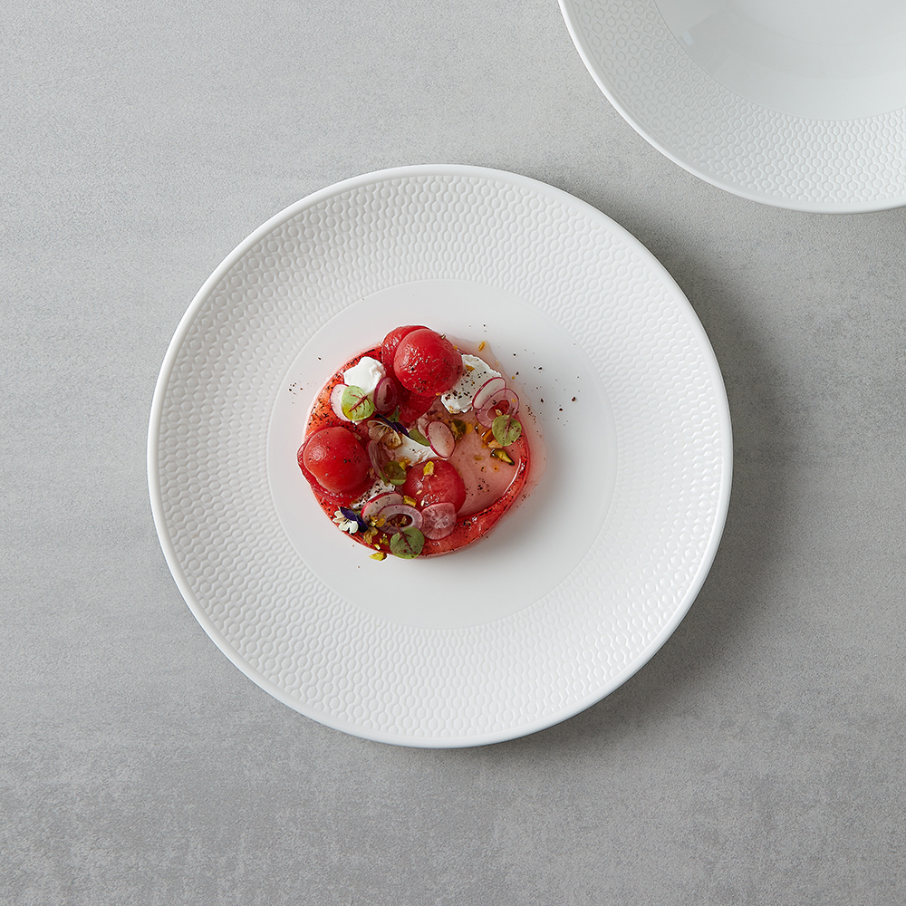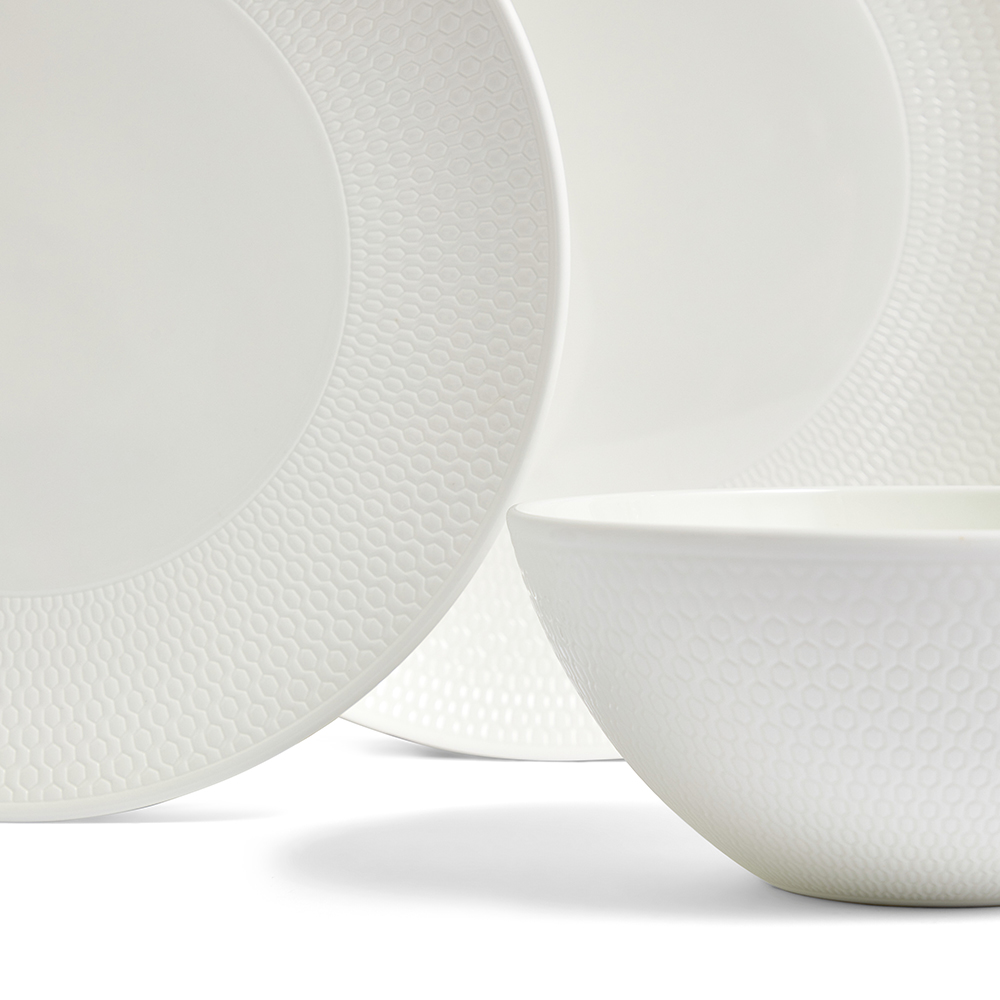 The crisp white plates and bowls in this Gio 12-piece dinnerware selection make the perfect backdrop for presenting your culinary delights. They're designed at our home in Barlaston, England and crafted from fine bone china that's as strong as it is beautiful. Highlight the design's understated elegance by using the whole set together or, for an eclectic dinner table, complement with items from Wedgwood's patterned collections.