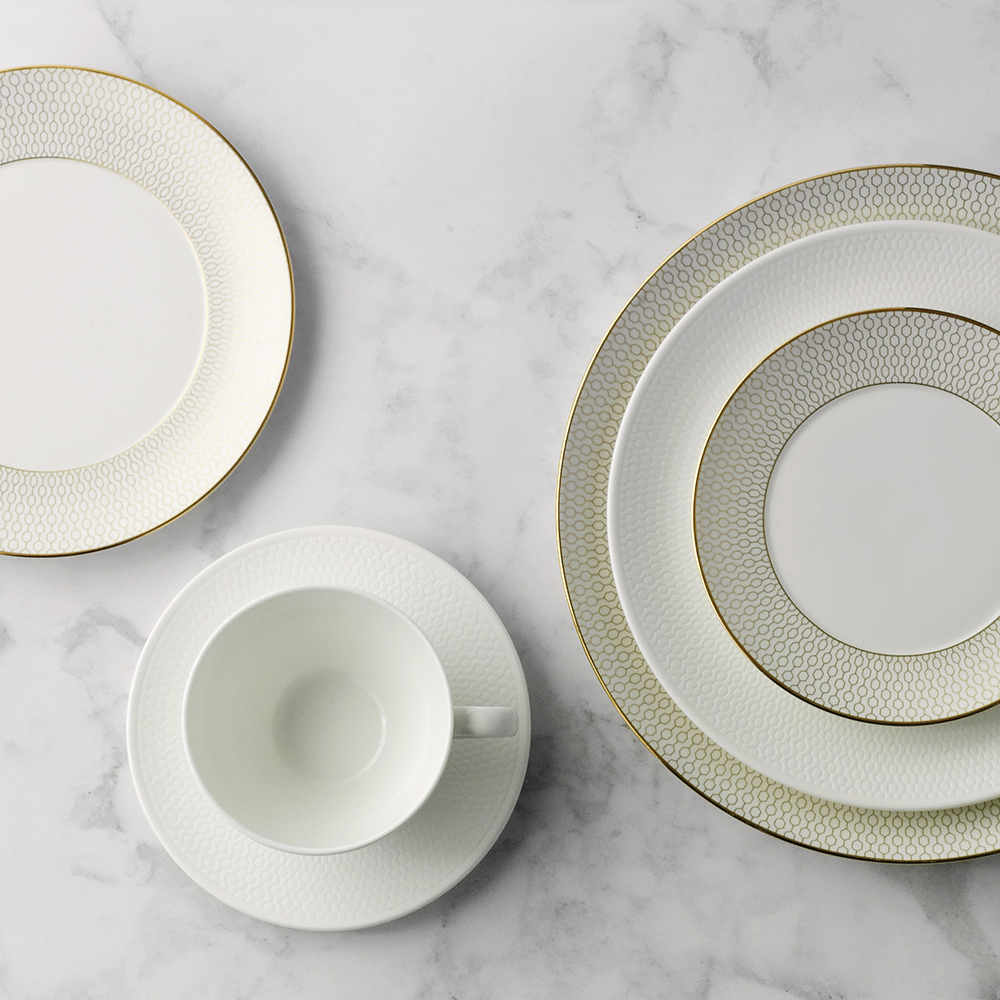 Inspired by heritage shapes and textures. Designed for contemporary living. A versatile offering of gilded pure white tableware is complimented by accent coffee and teaware, encouraging stylish eclecticism.