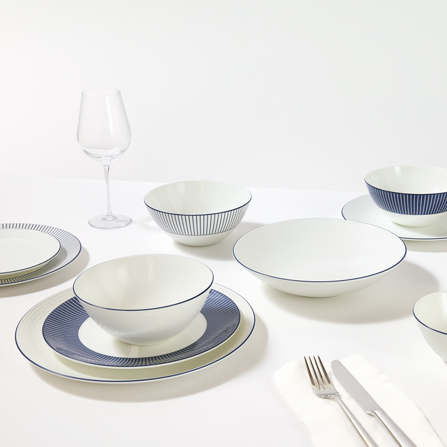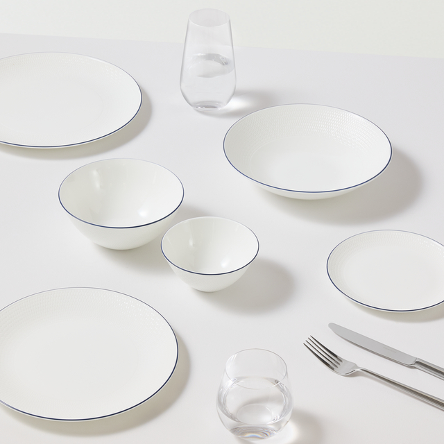 From fusilli to farfalle and all in between, give your Italian cuisine a suitably luxurious presentation with this Gio pasta bowl. Designed in England, the piece presents a modish minimal look enlivened with a hand-drawn blue accent line around the rim. A perfect gift for pasta lovers.