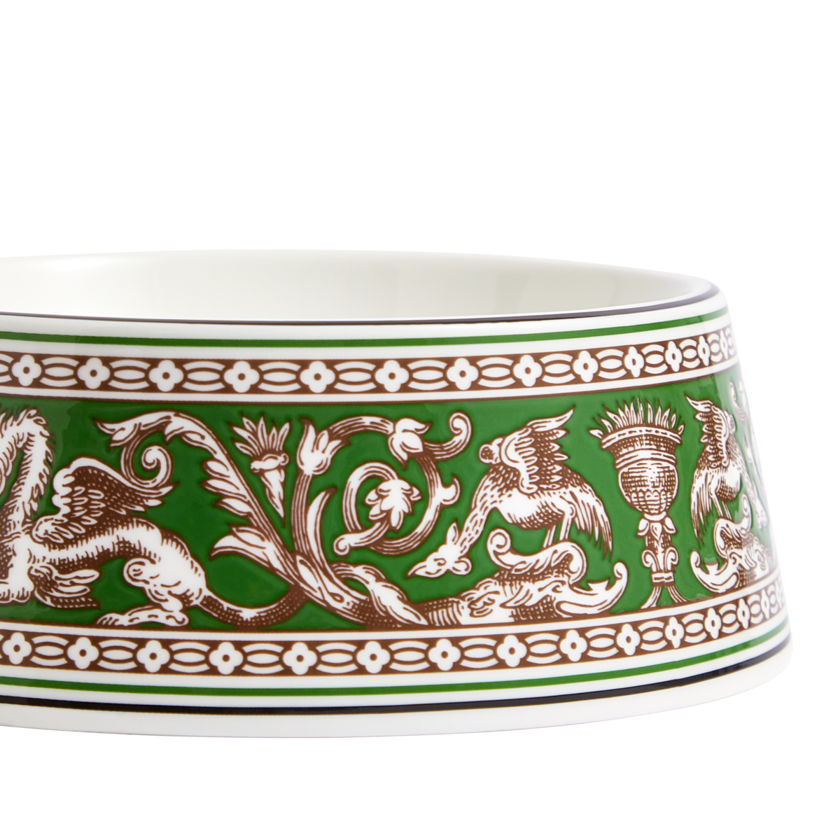 Let your pet companion dine with mythical creatures thanks to this exceptional pet bowl. Verde is one of Florentine's newest colours â€" fresh, bold and ultra-modern. This fine bone china bowl is proportionally perfect for the smaller pet.