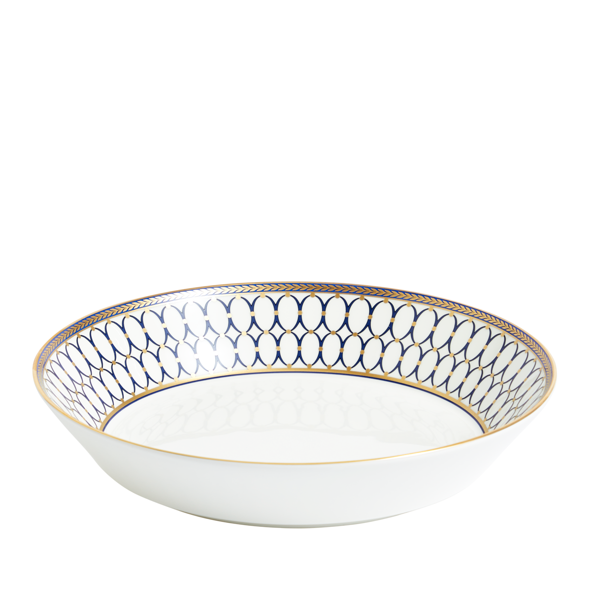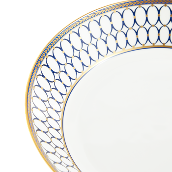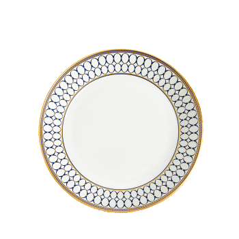Inspired by decorative motifs favoured by Neoclassical architect and designer Robert Adam and the pure oval forms of the Wedgwood archive cameo. Renaissance Gold features a bold Wedgwood blue and gilded detailing of a laurel border.