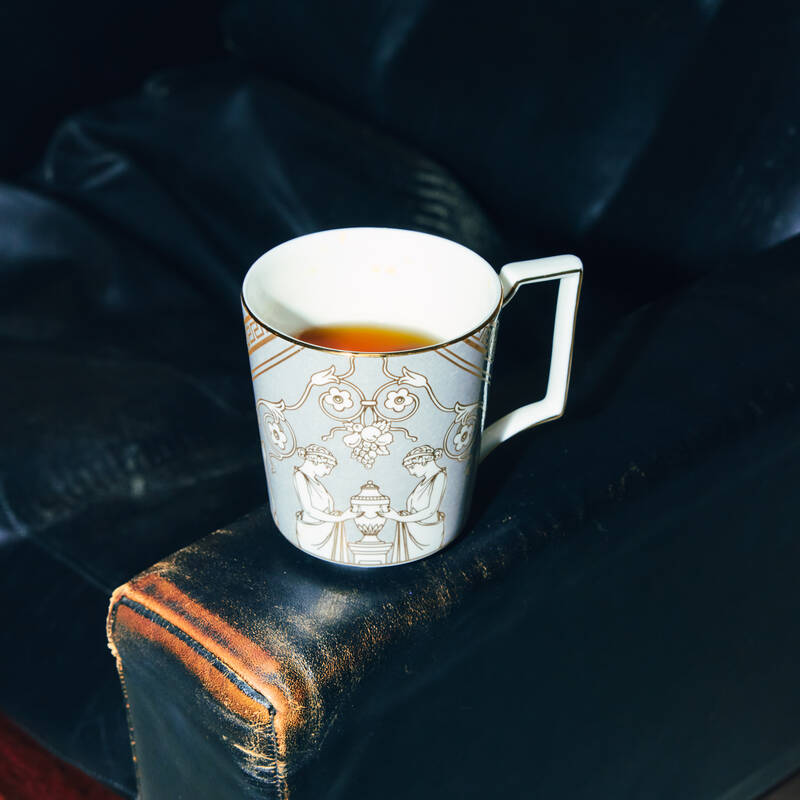 The perfect accompaniment to your hot drink of choice, this delicate grey aesthetic is shot through with gold detailing and enhanced with Jasper figure renderings.