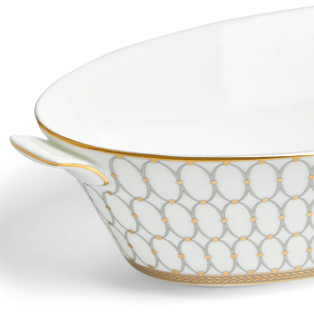 Elevate your dinner table with this Renaissance Grey Oval Serving Bowl. Present beautiful vegetable dishes, roasts or salads in this stylish serveware crafted from fine bone china. Adorned with archive inspired patterns influenced by Renaissance design and Jasper cameo with delicate gold detailing, mix and match with other pieces and colours form the Renaissance family.