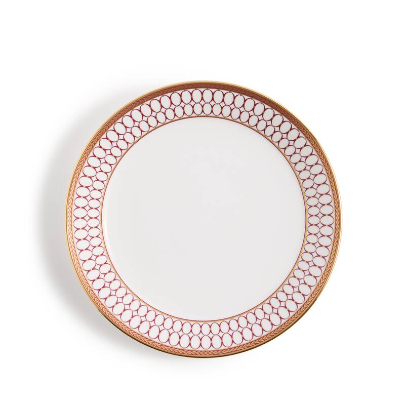 The rich red Renaissance pattern adorns the perimeter of this beautiful fine bone china design. Our skilled craftspeople then handline the outside with glittering gold detailing for a glinting finish.